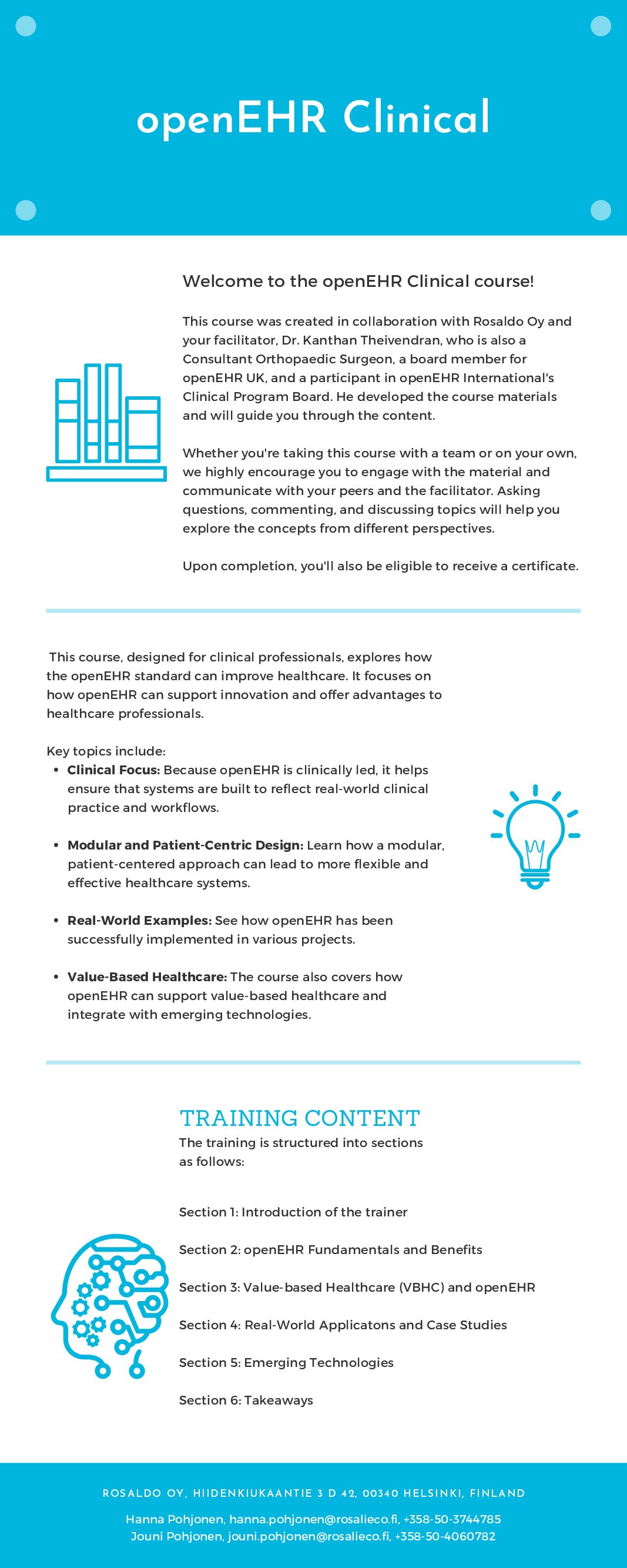 This course is designed for clinical professionals and explores how the openEHR standard can improve healthcare. It focuses on how openEHR can support innovation and offer advantages to healthcare professionals.